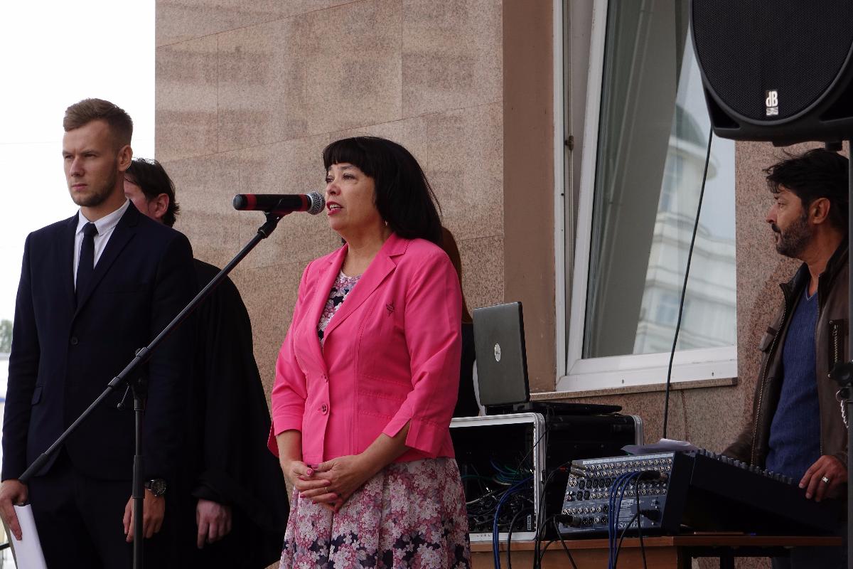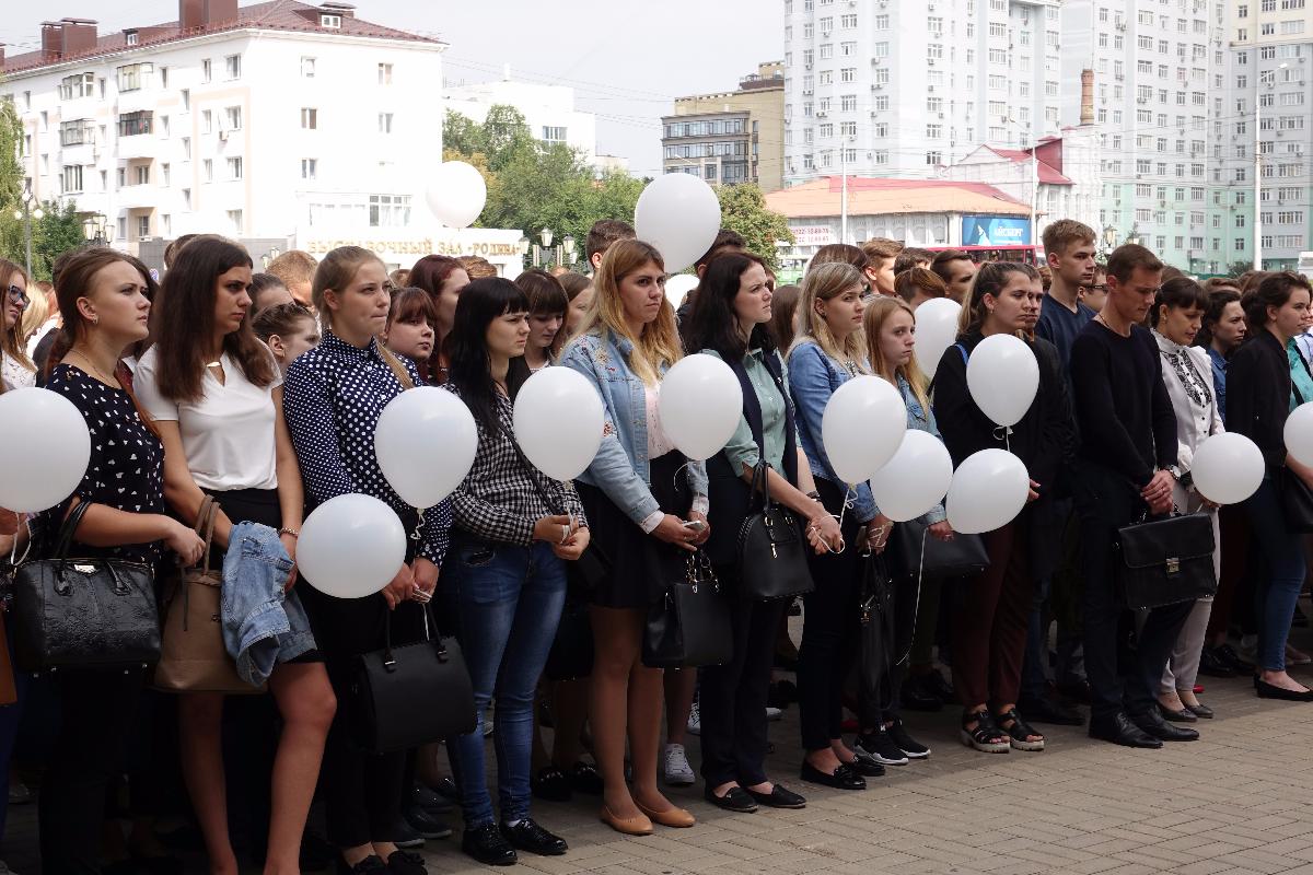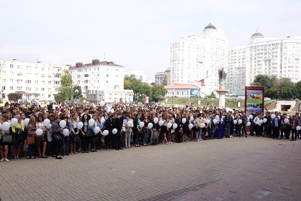 Со вступительным словом к молодёжи обратилась проректор по культурно-воспитательной деятельности НИУ «БелГУ» Светлана Острикова. Она напомнила участникам митинга о страшных событиях в школе Беслана 13 лет назад, когда по вине террористов погибли 334 человека, среди них – 186 детей.
