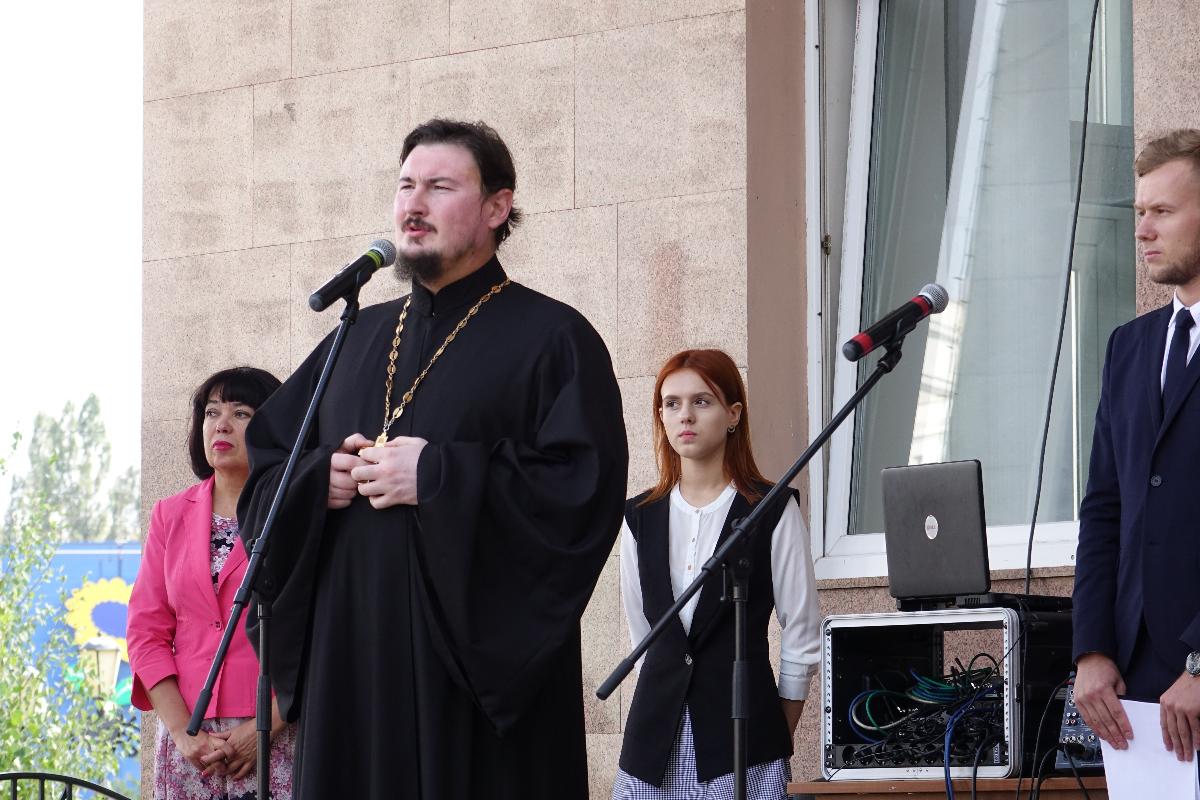 С напутственными словами к участникам митинга обратился настоятель храма Архангела Гавриила, отец Юлиан. Он призвал всех не допустить террористических действий и существовать в единстве.