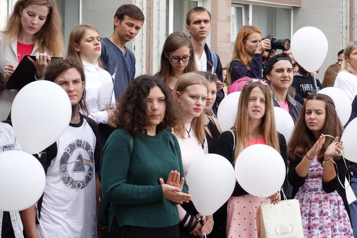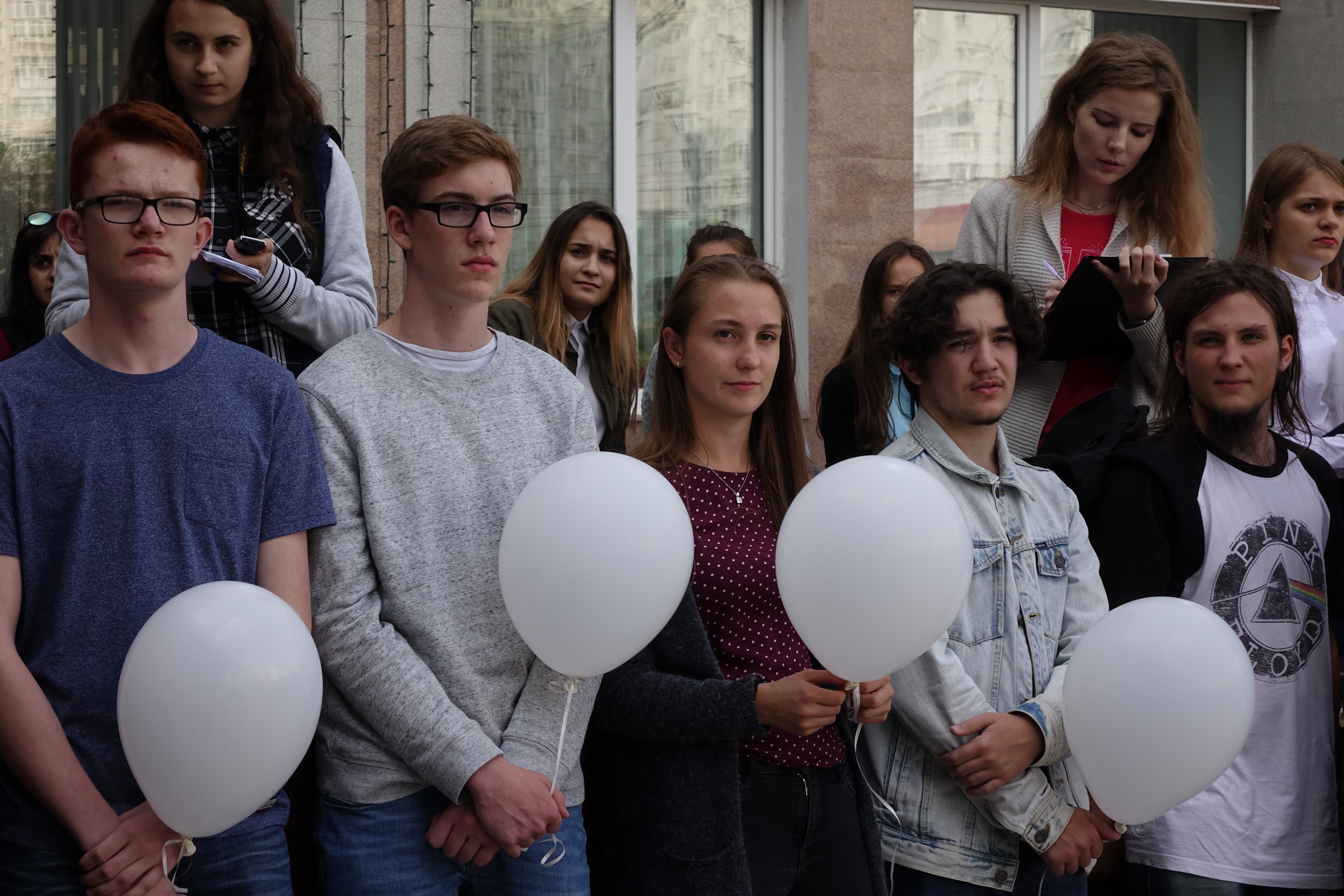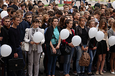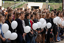 В знак светлой памяти обо всех жертвах терроризма была объявлена минута молчания. Затем студенты выпустили в небо 150 белых шаров.