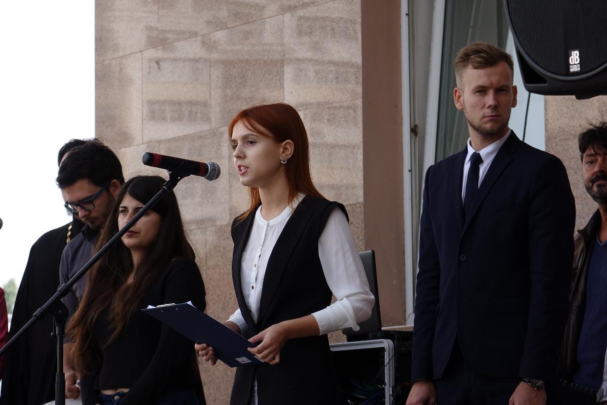 На университетской площади студенты, преподаватели, жители и гости города собрались вместе, чтобы отдать дань памяти всем погибшим в террористических актах и осудить их организаторов.