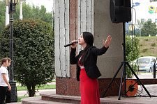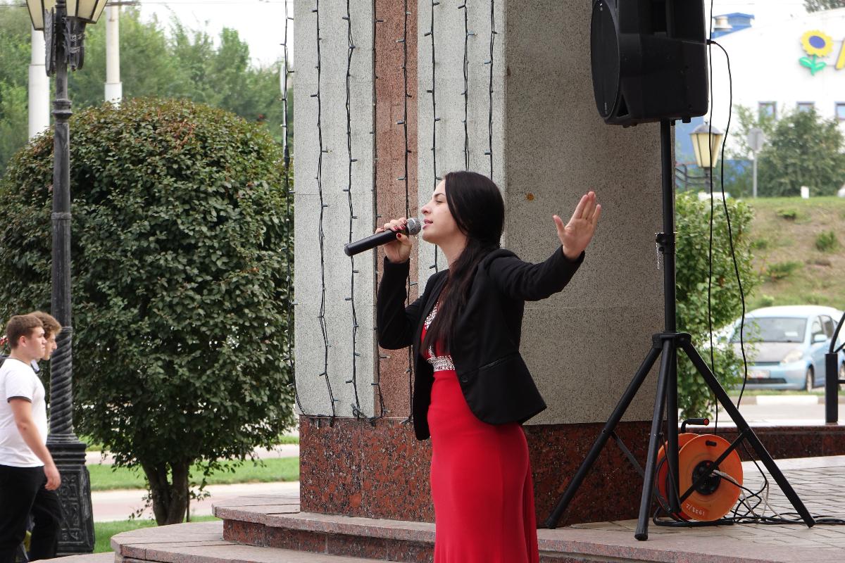 Против терроризма и гибели людей выступила солистка арт-студии «Вереск» Ксения Девятникова. Она исполнила песню «Дети войны».