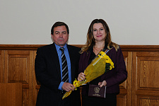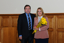 Ректор Олег Полухин вручил аттестат профессора Ольге Иващук – профессору кафедры информационных систем. Он поздравил Ольгу Александровну с присвоением учёного звания и пожелал успехов в научной деятельности.