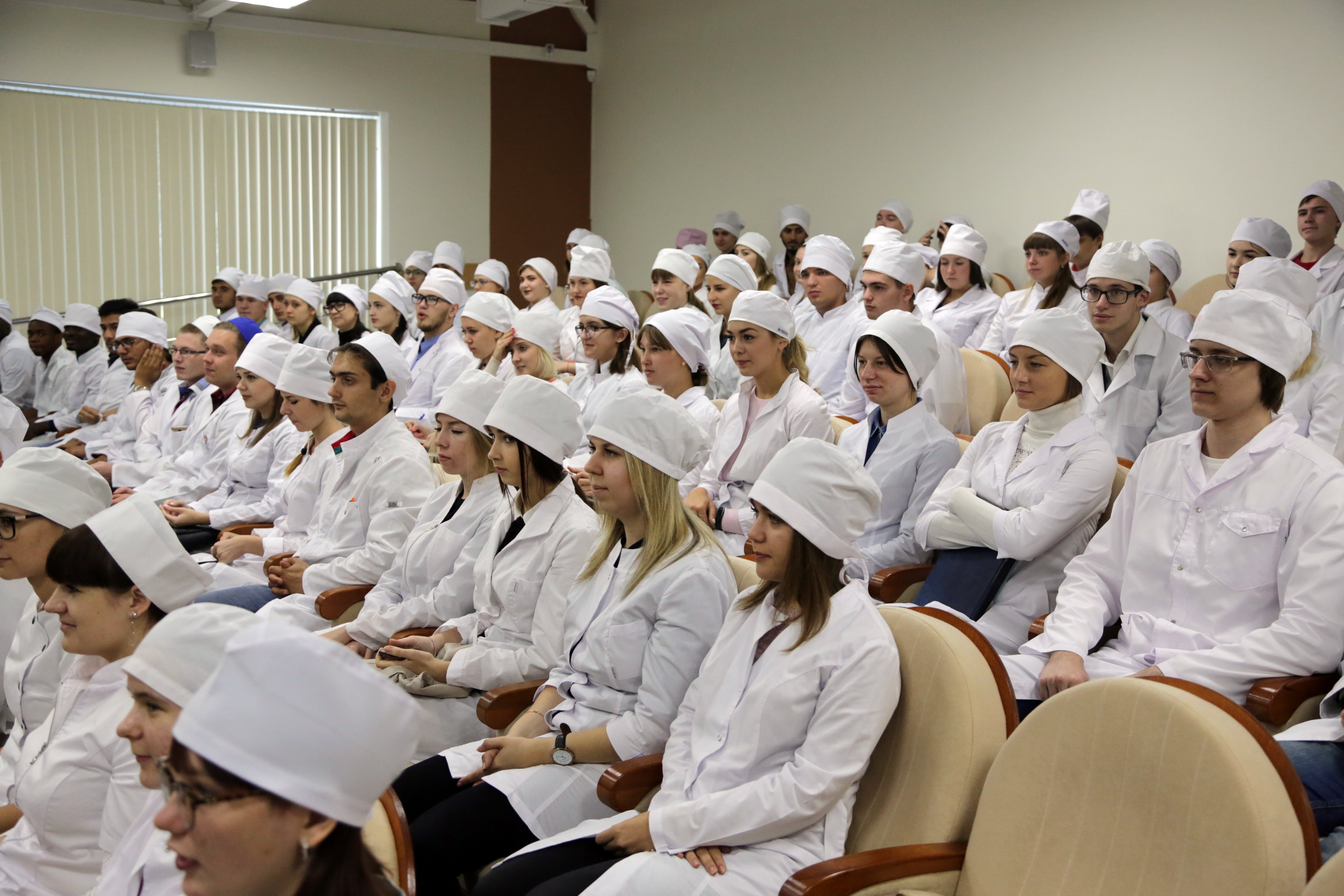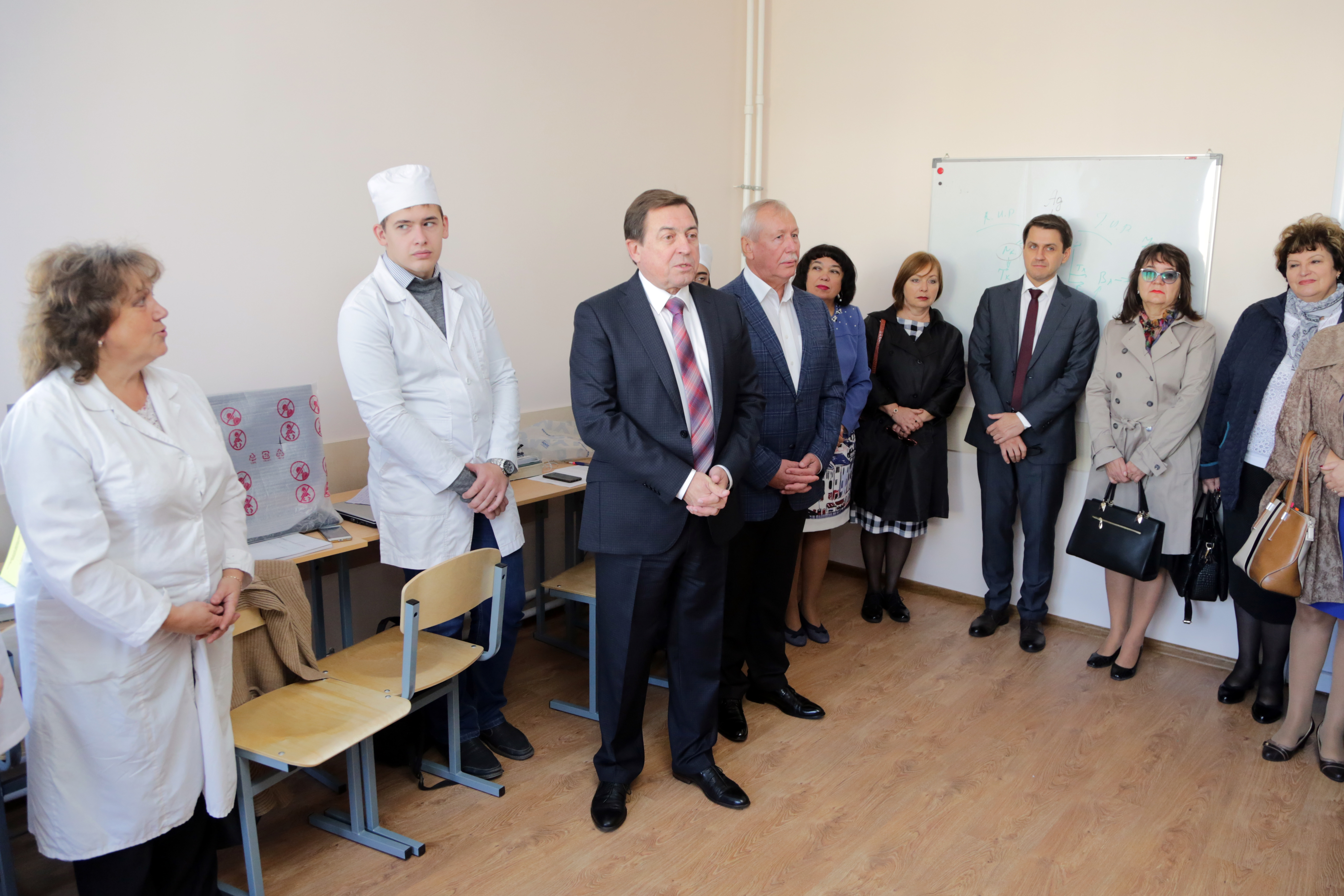 Финальной точкой осмотра нового объекта стала лекционная аудитория. Ректор Белгородского госуниверситета Олег Полухин поздравил студентов и коллектив кафедры с новосельем, отметил, что Медицинский институт имеет все возможности для того, чтобы конкурировать с лучшими медицинскими вузами России.