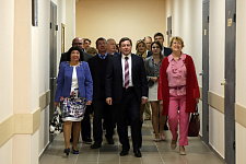 Перед торжественной церемонией открытия Центра ректор НИУ «БелГУ», профессор Олег Полухин, представители ректората, директора институтов и деканы факультетов посетили зал греко-римской борьбы, который недавно начал свою работу. Они ознакомились с учебным процессом – занятиями студентов в тренажёрном зале и зале единоборств.