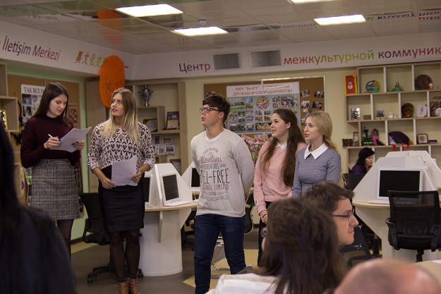Студенты группы 04001505 Дарья Назаренко, Ангелина Казанцева, Алена Ужва и Анастасия Сидоренко организовали для участников конкурсы. Студенты и школьники соревновались в произнесении скороговорок, мнемотехнике; представители 4 и 5 курсов Максим Кушнарев (04001405) и Анастасия Хачатрян (04001317) достойно выступили в конкурсе на лучший последовательный перевод.