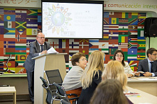 Владислав Кучмистый и директор Института межкультурной коммуникации и международных отношений Ольга Прохорова выступили с приветственным словом, отметив возрастающую роль специалистов в области межкультурной коммуникации и сложность переводческой профессии. Заведующий кафедрой английской филологии и межкультурной коммуникации Владимир Пугач рассказал о требованиях к переводчику, профессиональной этике, перспективах развития профессии в условиях глобальной компьютеризации. Владимир Сергеевич также отметил сложность устного последовательного и синхронного перевода, психологические и организационные трудности, с которыми сталкивается специалист.