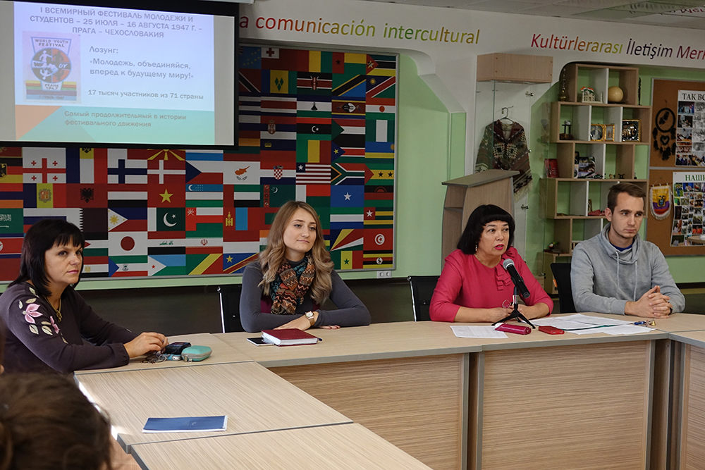 В Центре межкультурной коммуникации НИУ «БелГУ» прошла встреча участников XIX Всемирного фестиваля молодёжи и студентов, который пройдёт в Сочи с 14 по 21 октября. В фестивале примут участие более 20 000 студентов и молодых специалистов различного профиля из более чем 150 стран мира. НИУ «БелГУ» на нём представят 50 человек. Это студенты, преподаватели и сотрудники университета. В составе делегации также 15 волонтёров.