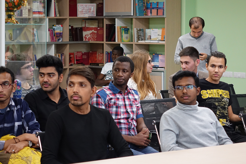 На встречу с участниками ВФМС-2017 собрались студенты институтов и факультетов НИУ «БелГУ», представители землячеств Индии, Африки, Армении, Молдовы, Бразилии, Латинской Америки, арабских стран, Таджикистана, Туркменистана, Узбекистана, Вьетнама, Китая, активисты студенческих объединений и преподаватели университета. Среди представителей иностранных государств были молодые люди из Болгарии и Эквадора – стран, где Всемирный фестиваль молодёжи и студентов проводился в 1968 году и в 2013 году. Магистрант Института управления София Генинска рассказала о IX Всемирном фестивале молодёжи и студентов, а ассистент кафедры конституционного и международного права Юридического института Ибарра Пабло Ан Пин и студентка Института экономики Россана Флорес поделились впечатлениями о XVIII Всемирном фестивале молодёжи и студентов.