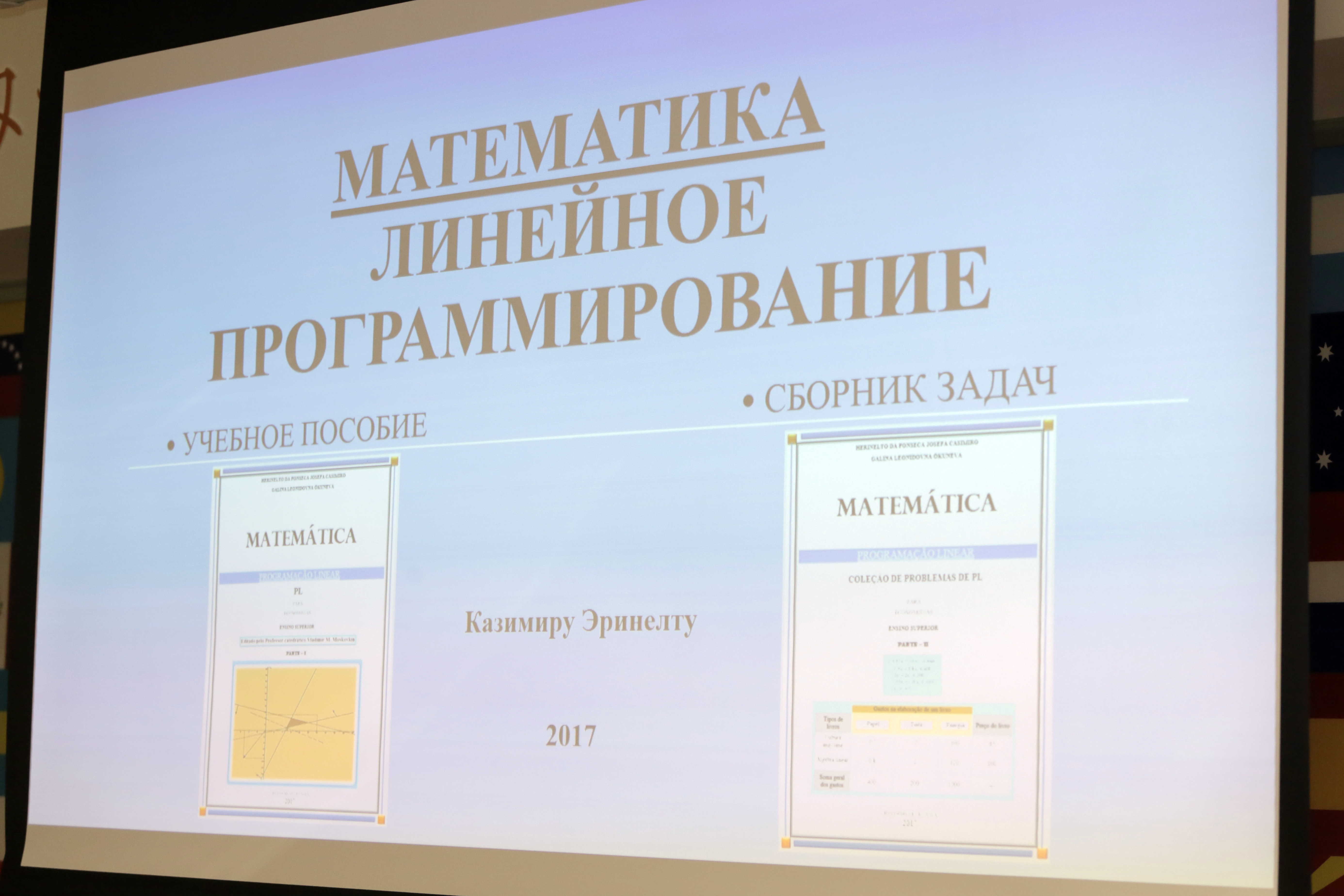 Презентация, центральной фигурой которой стал автор учебных пособий по линейной математике, аспирант Института экономики Казимиру Эринелту, проходила в Центре межкультурной коммуникации. Участие в ней принимали преподаватели и студенты Белгородского госуниверситета. Директор Центра межкультурной коммуникации НИУ «БелГУ» Елена Назаренко в приветственном слове подчеркнула, что Белгородский госуниверситет создаёт все условия для развития студентов и аспирантов.