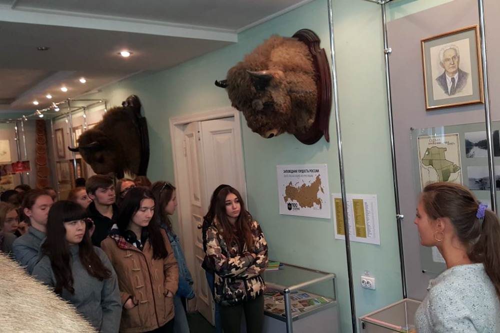 Специалист отдела экологического просвещения Екатерина Макасеева рассказала студентам первого и четвёртого курсов о том, какие мероприятия проводит заповедник в Год экологии и к 100-летию заповедной системы России. Доцент кафедры биотехнологии и микробиологии Валентина Скорбач провела для первокурсников занятие по ботанике, а бакалавры четвёртого курса вместе с заведующей кафедрой Еленой Думачёвой – практическую работу по дисциплине «Биологические ресурсы».