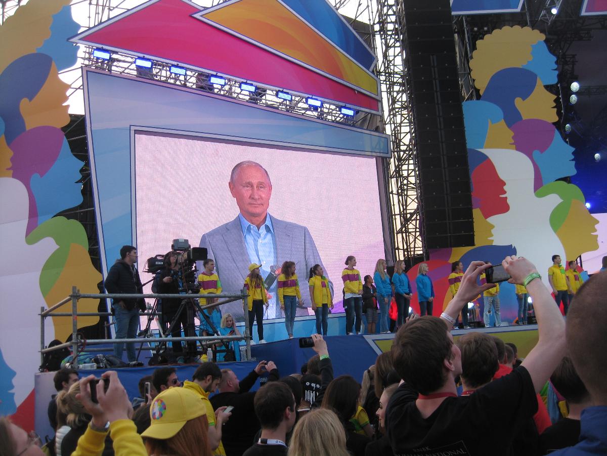 В своем выступлении Светлана Александровна отметила, что ярким событием ВФМС стала церемония открытия, включавшая интерактивное действие с участием музыкантов, артистов балета и цирка, шествие делегаций стран участниц, музыкальный спектакль с использованием проекционных экранов. В торжественной церемонии открытия фестиваля принял участие Президент РФ Владимир Путин.