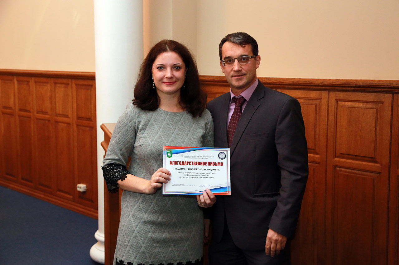 В рамках научно-практической конференции также был проведен конкурс лучших студенческих работ. Победителем конкурса стала Ирина Бойко, студентка 4 курса кафедры социальных технологий, представившая доклад на тему «Технологии поступления на государственную службу».