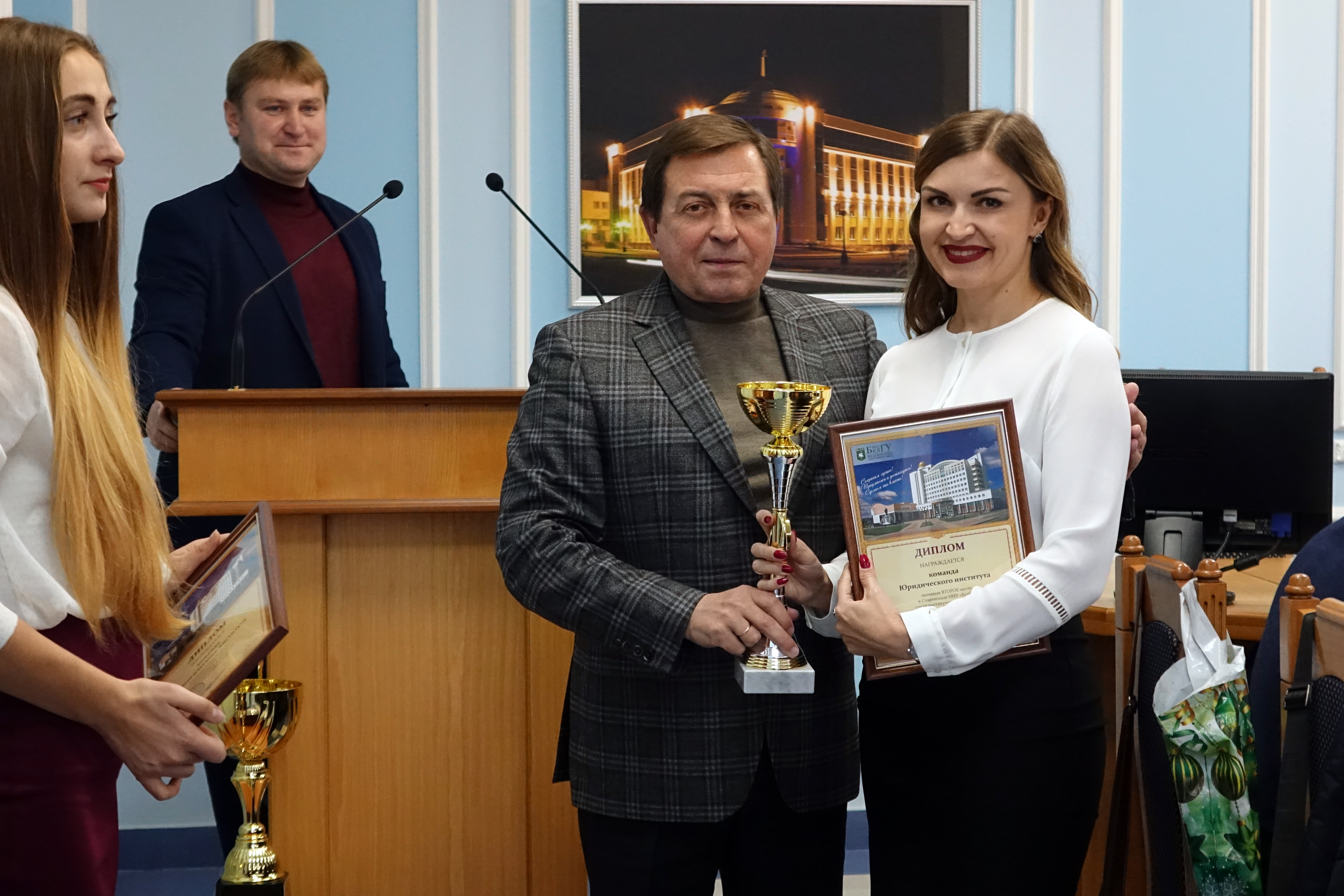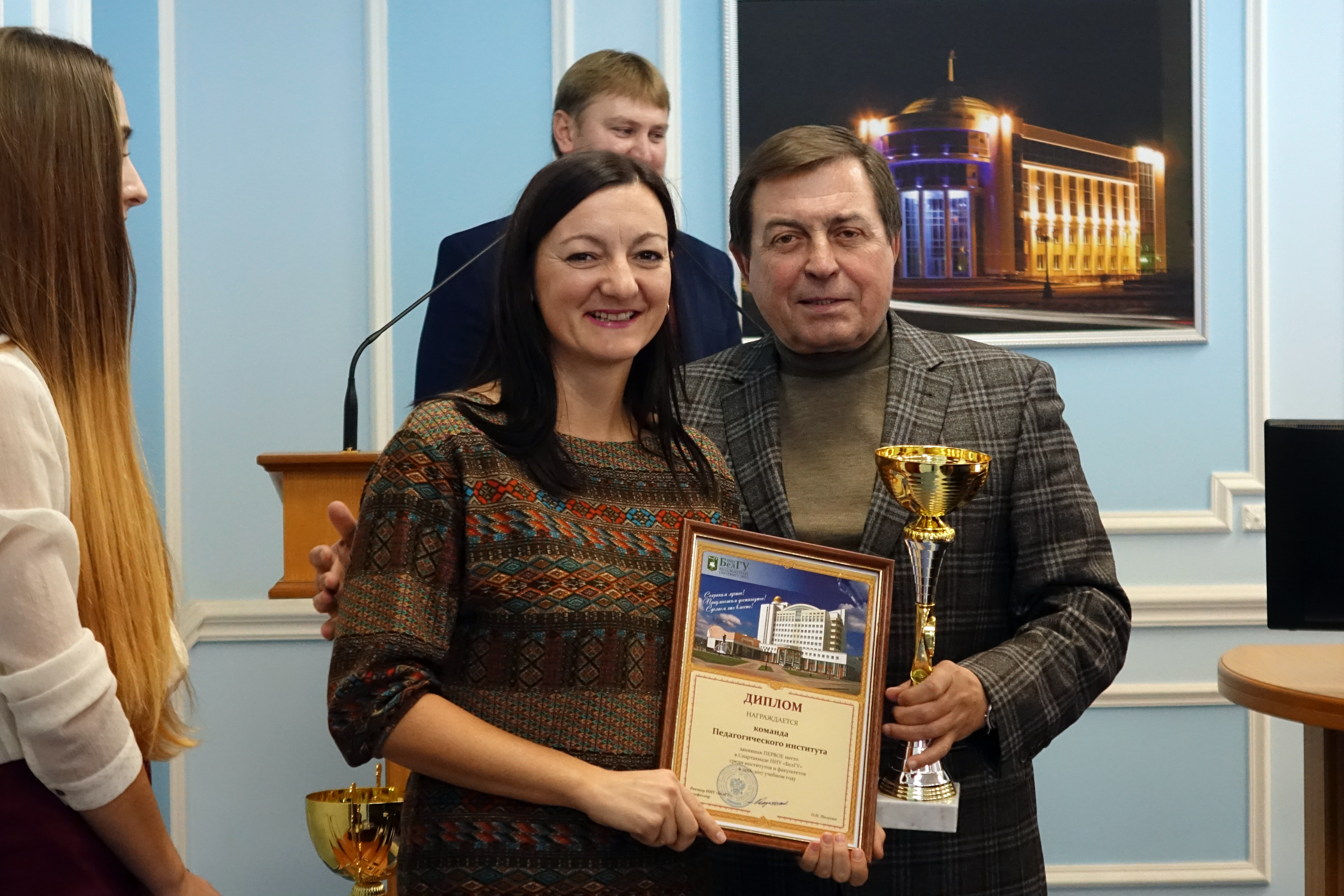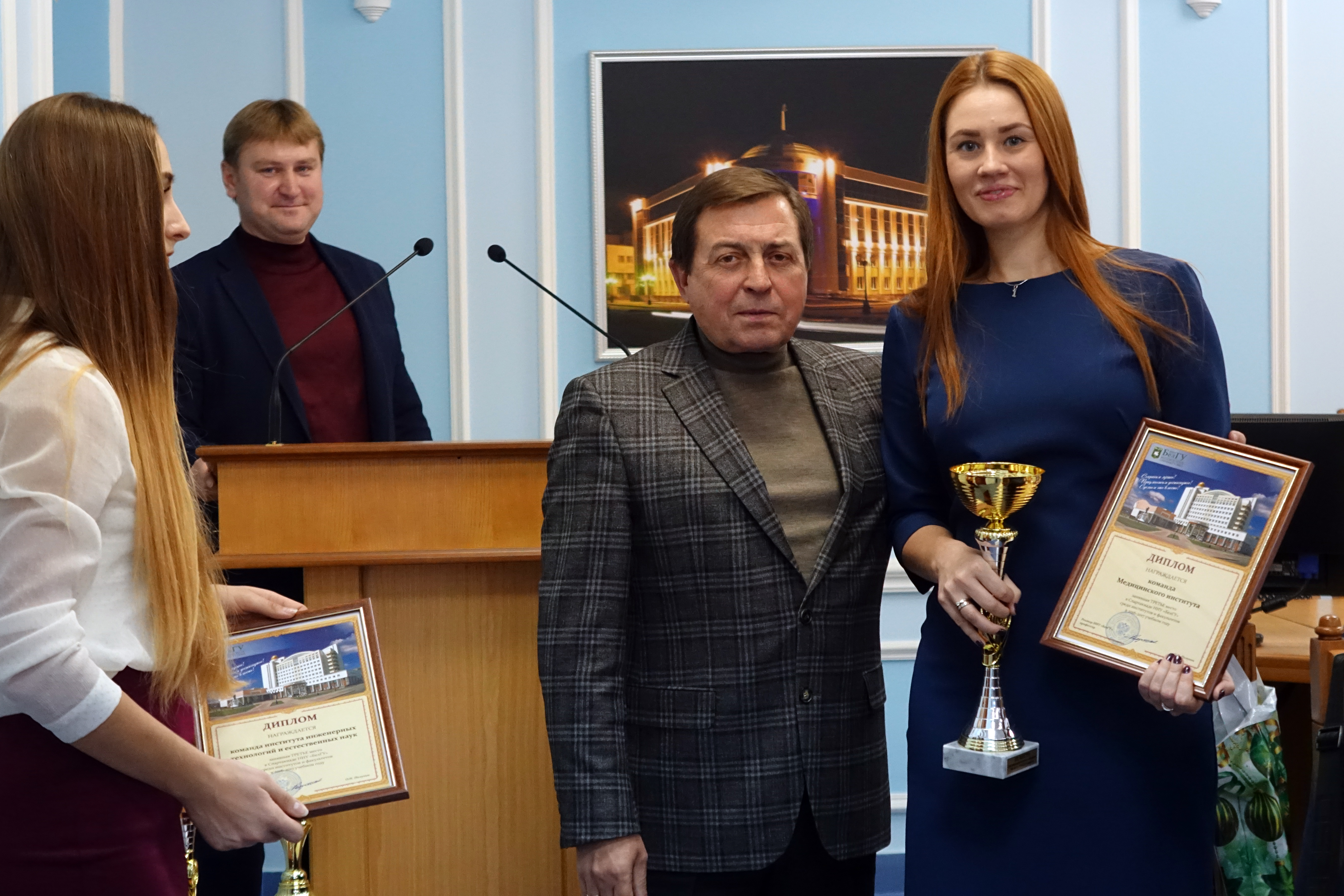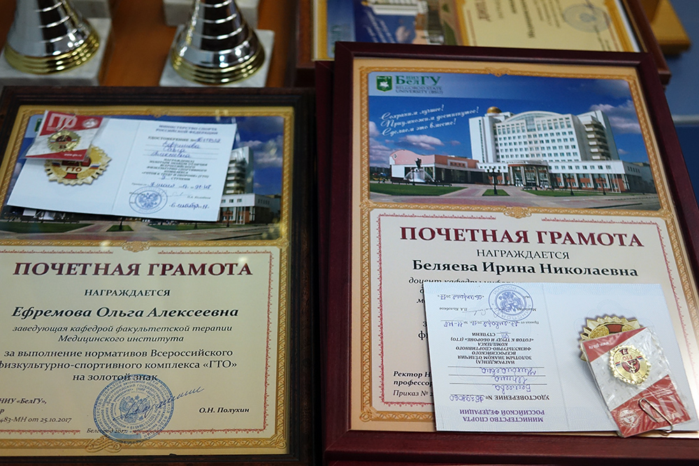 Работа совета началась с церемонии награждения победителей и призёров спартакиады институтов и факультетов. По итогам учебного 2016-2017 года первое место – у Педагогического института, на втором – Юридический институт, а третье разделили ИИТиЕН и Медицинский институт. Церемония награждения продолжилась вручением золотых знаков ГТО шестнадцати преподавателям и сотрудникам Белгородского госуниверситета. Представителю Юридического института был вручён кубок за активное участие студентов и сотрудников в сдаче нормативов комплекса.
