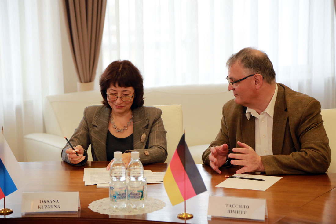 Ректор НИУ «БелГУ» Олег Полухин встретился с деканом института исторических исследований факультета социальных наук Бременского университета, президентом Ассоциации философских факультетов Германии (Philosophischer Fakultätentag (PhFT) профессором Тассило Шмиттом