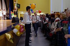 Будущие медицинские работники подарили цветы ветеранам медицинского колледжа, приглашённым на праздник.