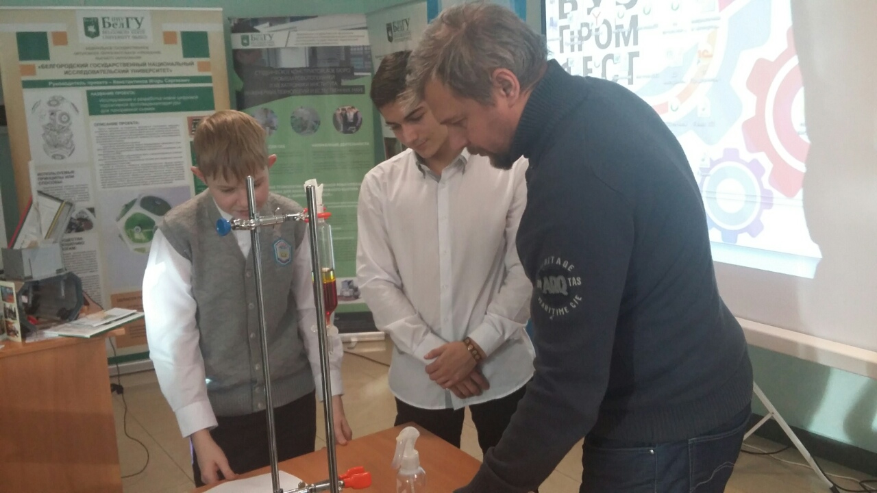 Мастер-класс по химии провел руководитель направления «фармацевтический инжиниринг» (НОЦ «Инжиниринговая школа НИУ «БелГУ») Борис Папонов, о научных разработках рассказала эксперт презентационно-выставочного отдела Ольга Цыбульник.