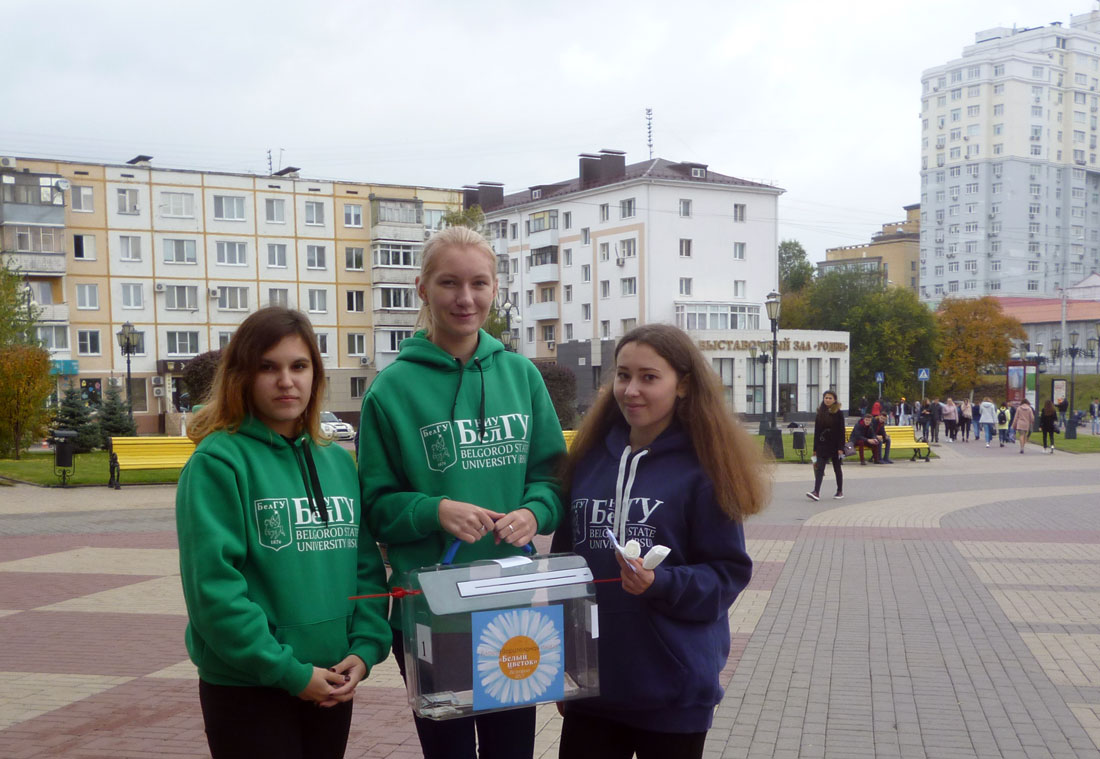 В этом году месячник благотворительности «Белый цветок» в Белгороде проходил уже в пятый раз. За время проведения акции оказана помощь 47 детям. Белгородский госуниверситет всегда участвует в благом деле. В этот раз студенты, представители волонтёрского движения «Горячие сердца», преподаватели и сотрудники вуза собрали около 110 тысяч рублей. Сбор средств осуществлялся в ходе ярмарок продажи поделок, сделанных руками обучающихся и других мероприятий. Среди наиболее активных – медколледж Медицинского института, Педагогический институт, ИИТиЕН и Юридический институт.