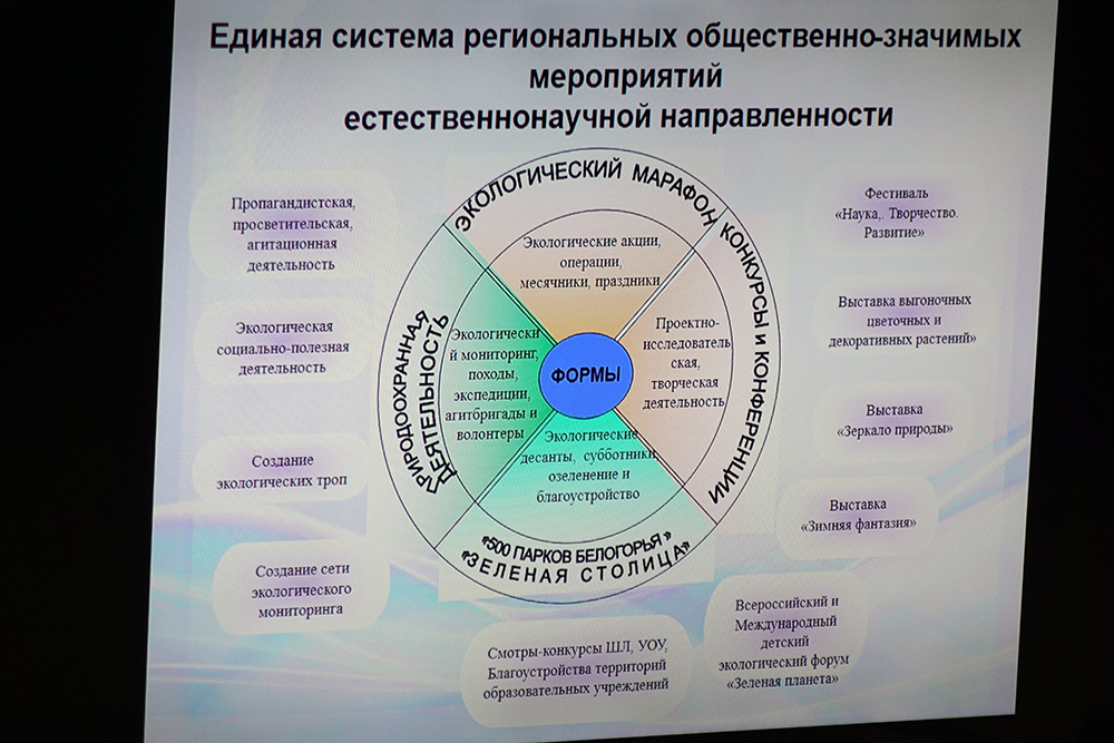 С докладами на пленарном заседании выступили первый заместитель начальника департамента образования Белгородской области – начальник управления организационно-контрольной и проектной деятельности Елена Тишина, начальник управления воспроизводства окружающей среды департамента агропромышленного комплекса и производства окружающей среды Евгений Шевчук, старший научный сотрудник научно-исследовательского подразделения лаборатории «Гербарий» Главного ботанического сада им. Н.В. Цицина РАН Наталья Решетникова. Эксперты рассказали о проводимой в Белгородской области и России работе по развитию экологического образования и содействию с учреждениями образования и гражданами.