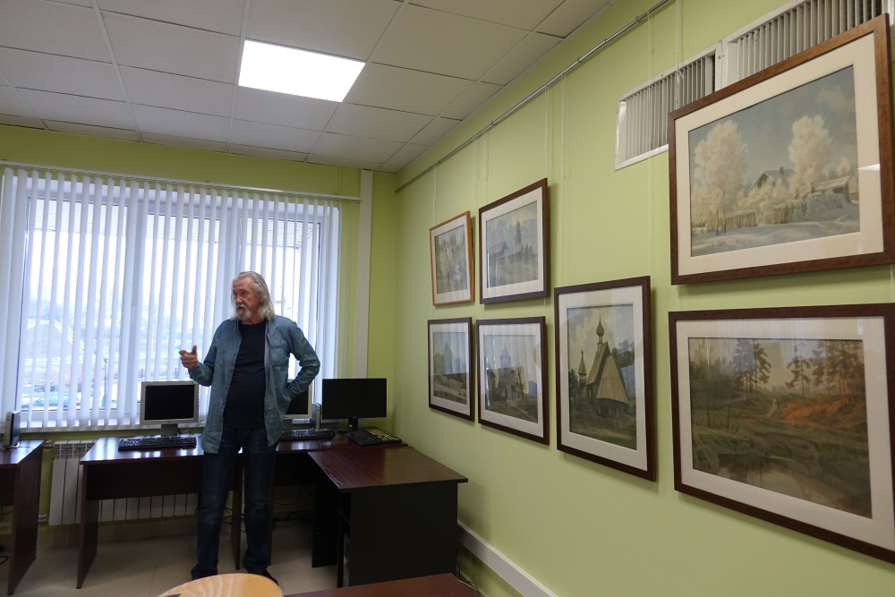 Владимир Лыткин открыл выставку «Русь уходящая», представленную картинами – «Вечер», «Последний луч», «Церковь Николая Чудотворца» (Изборск), «Успенская церковь» (Иваново), «В окрестностях Ивни», «Иней» и др. В своих работах художник обращается к белгородским мотивам, видам Новгородского и Костромского края.