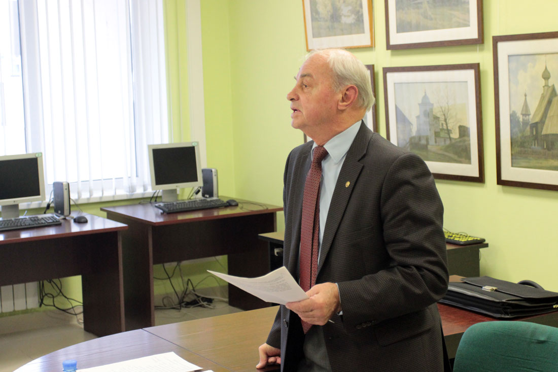 Виталий Зубков рассказал гостям о проделанной им работе по сбору материала, о встречах и беседах с преподавателями и сотрудниками университета.