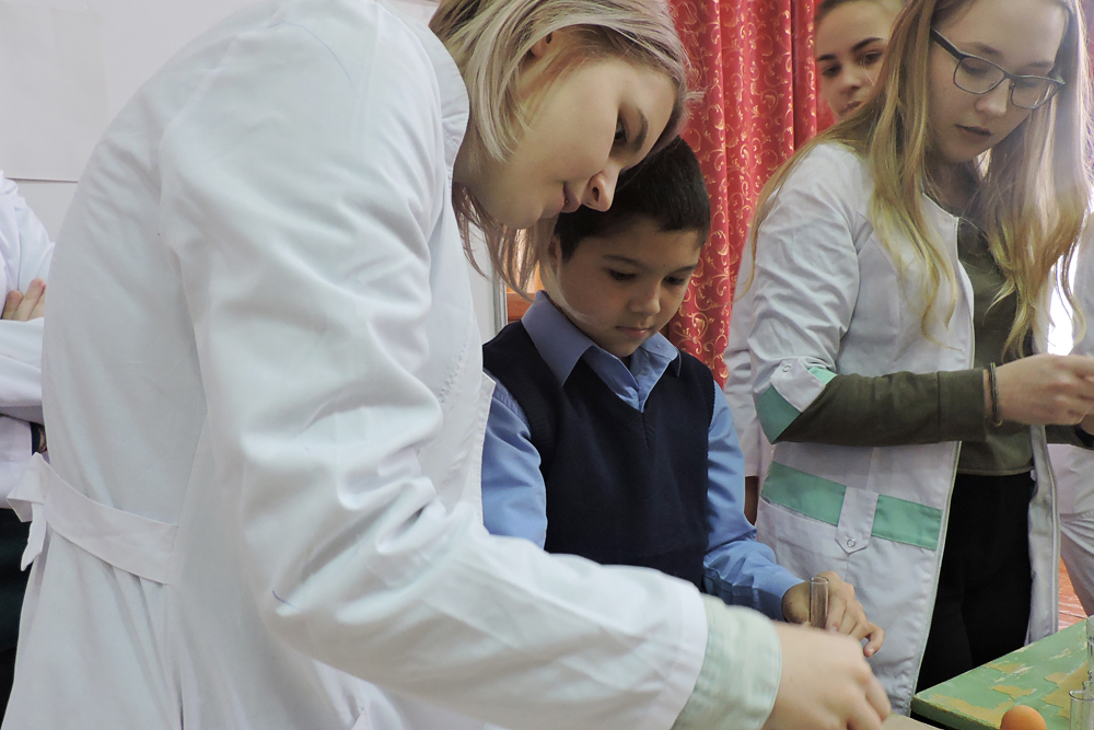 – Большой интерес школьников к мероприятию понятен, ведь им обещали, что в течение часа им не просто покажут опыты, а дадут самим что-нибудь определить, да еще и ответят на интересующие всех вопросы: много ли нитритов в любимых колбасах, хорошая ли вода в местном водопроводе, как выбрать наиболее полезные овощи и фрукты, – рассказала доцент кафедры общей химии Людмила Дейнека.