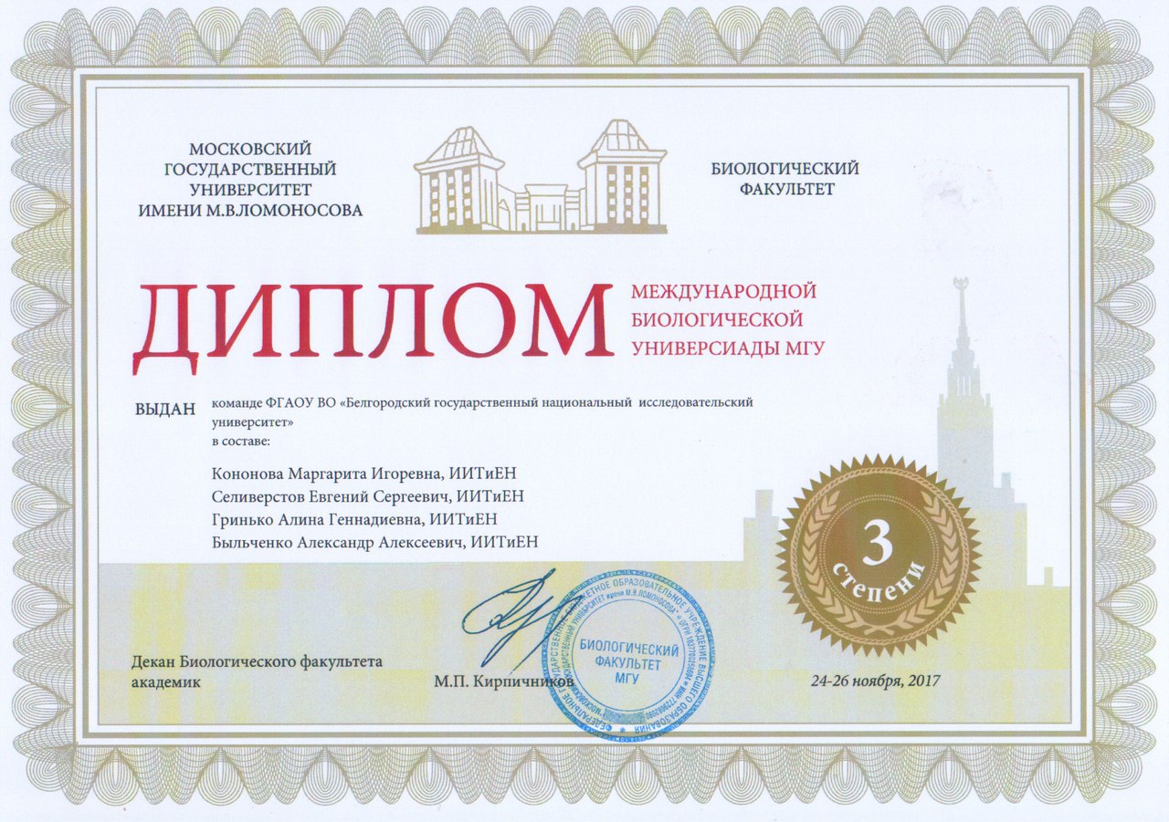 Студенты Института инженерных технологий и естественных наук НИУ «БелГУ» заняли третье место на Международной биологической универсиаде