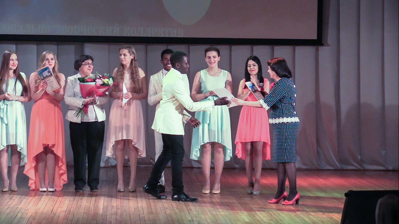 Подарком для творческого коллектива и зрителей стало видеопоздравление выпускника НИУ «БелГУ» Желсона Бенту из Анголы, которое молодой человек прислал ко дню рождения.