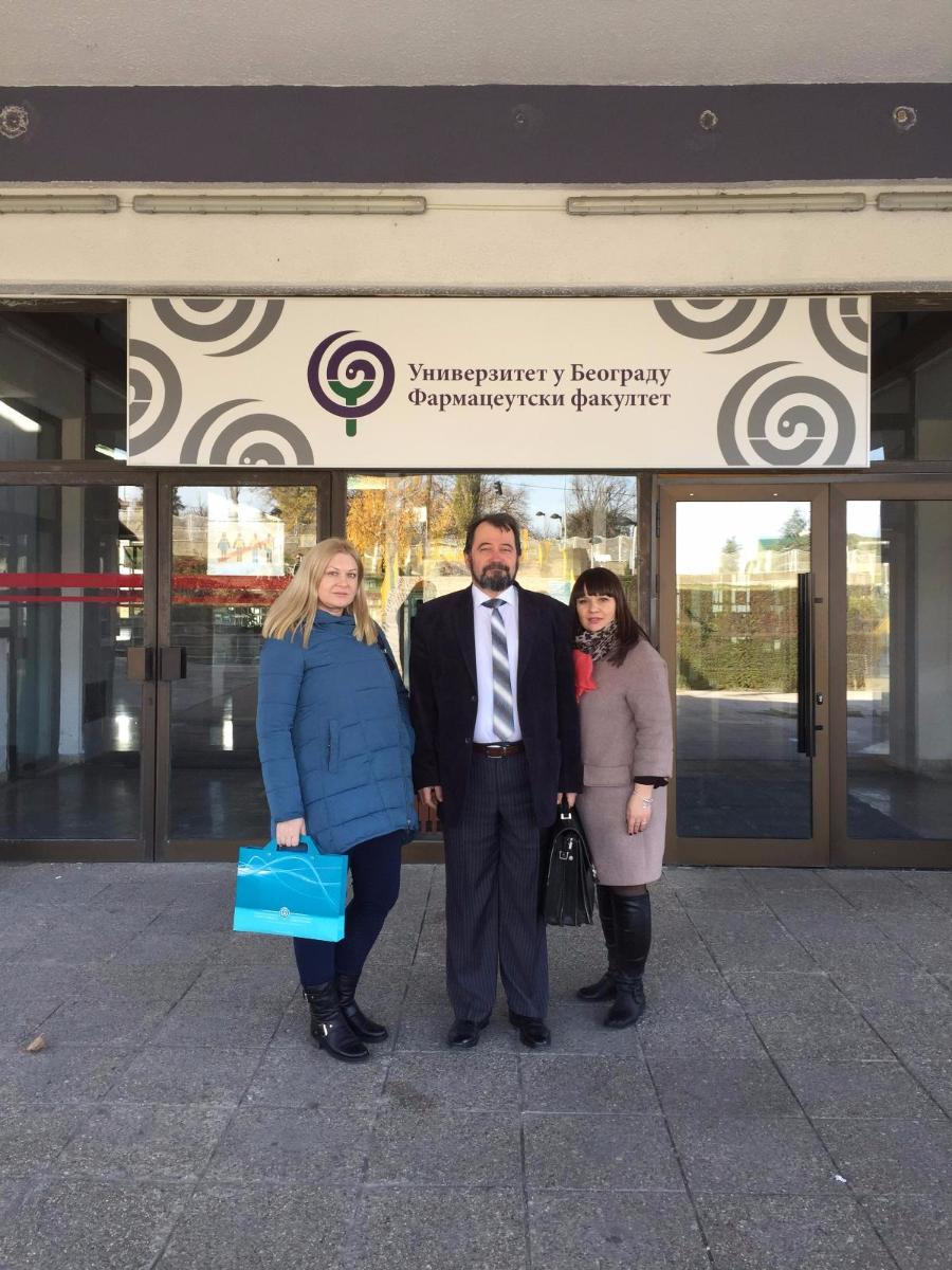 По приглашению коллег фармацевтического факультета Белградского университета сотрудники НИУ «БелГУ» встретились с руководством факультета: деканом, доктором, профессором Зорица Вуйич, заместителем декана по науке и международной деятельности, доктором, профессором Светланой Ибрич, заместителем декана по образовательной деятельности доктором, профессором Мариной Миленкович.