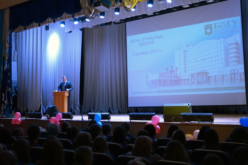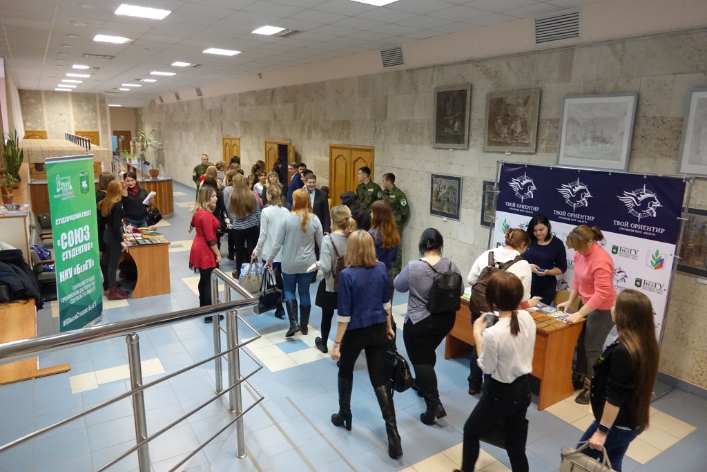 В концертном зале университетского кампуса по улице Студенческой будущих абитуриентов и их родителей встречал ректорский духовой оркестр, в холле была развёрнута выставочная экспозиция, представлявшая каждый из шести факультетов института. Студенты-волонтёры раздавали информационные буклеты, университетскую газету «Вести БелГУ», активисты Союза студентов рассказывали о студенческих объединениях вуза.