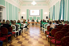 Другой площадкой дня стал круглый стол «Информационное сопровождение деятельности учреждений социальной защиты: проблемы и перспективы». В рамках этого мероприятия Школу посетили директор Разуменского дома детства Андрей Негомодзянов, представители ОГБУЗ «Старооскольский наркологический диспансер», а также выпускники социально-теологического факультета: руководитель БРОО содействия социальной реабилитации лиц страдающих химической зависимостью «Твоя победа» В.А. Майоров), социальный педагог-куратор, отделения комплексной помощи ГБУ «Центр подготовки и постинтернатного сопровождения выпускников «Расправь крылья» Н.М. Массан.