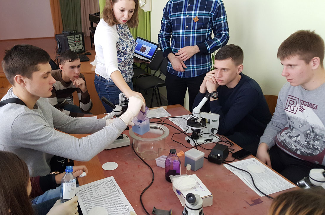 Мастер-классы по биологии были организованы Белгородским госуниверситетом и управлением образования администрации Губкинского городского округа на базе пятого лицея города Губкина. Более 50 старшеклассников самостоятельно готовили микроскопические препараты и изучали строение клеток под микроскопом. О своей лаборатории, научных исследованиях и перспективах современной биологической науки рассказала доктор биологических наук, профессор кафедры биологии Марина Скоркина.