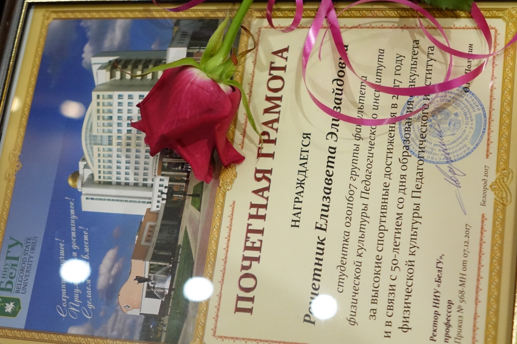 Ректор провёл церемонию награждения, вручив Благодарности и Почётные грамоты НИУ «БелГУ» сотрудникам и студентам, которые добились высоких результатов в спорте. Отметим, что среди награждённых были студенты как факультета физической культуры, так и других институтов и факультетов.