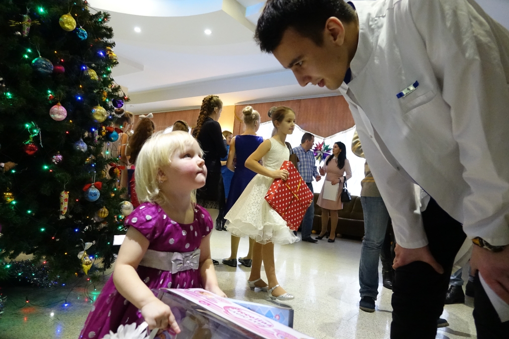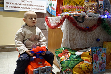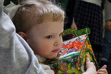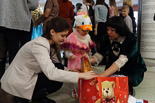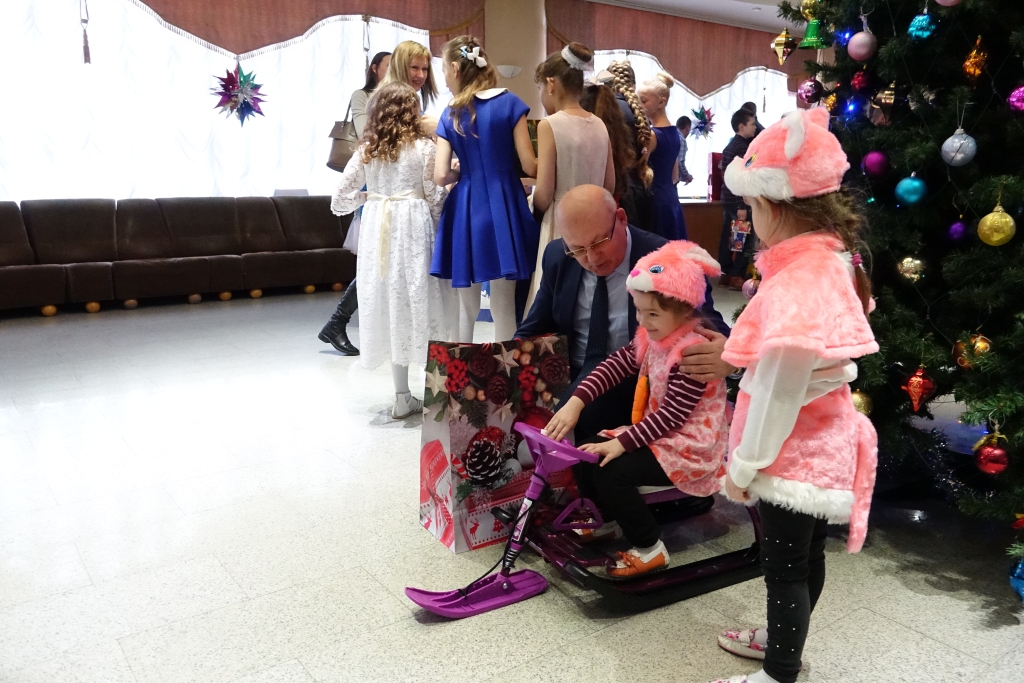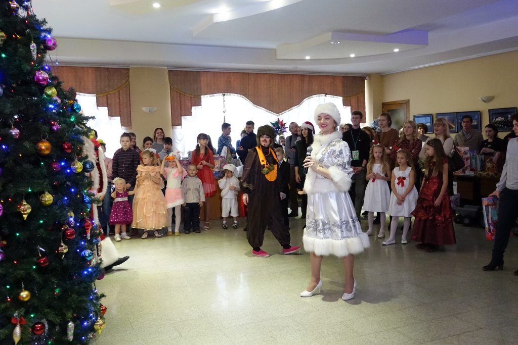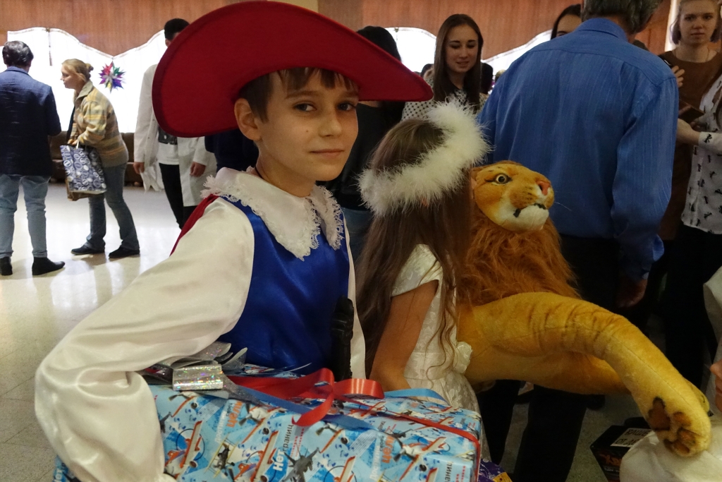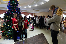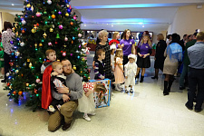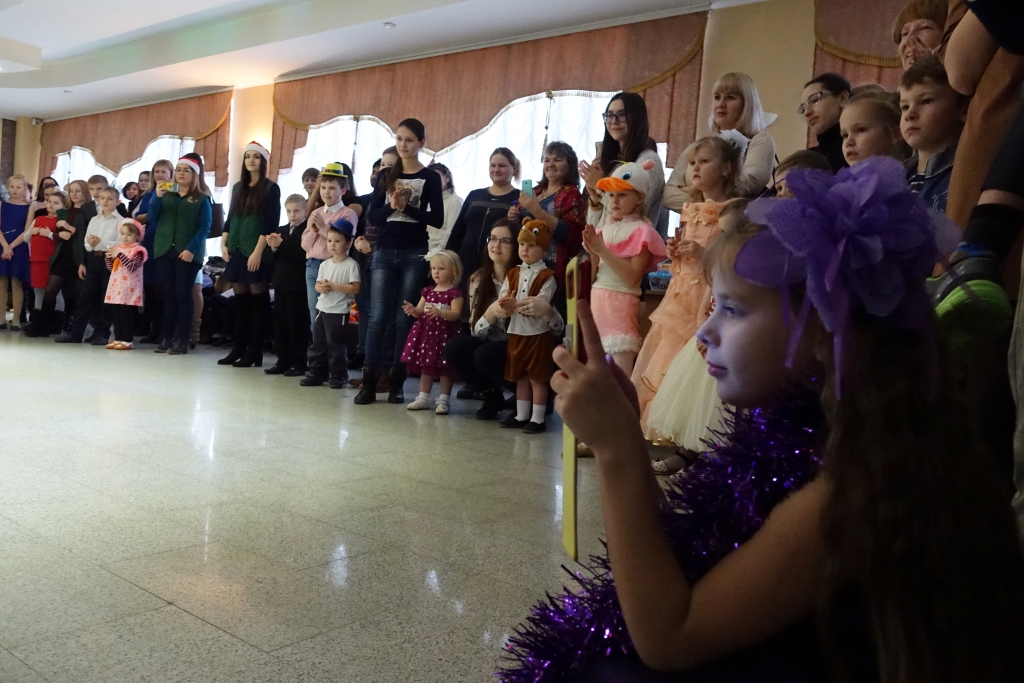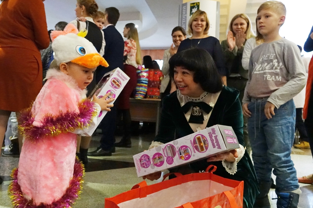 Маленькие гости закружили хоровод вокруг ёлки, поиграли с Дедом Морозом, угадали загадки, исполнили танцы и песни. В завершение праздника ребята получили долгожданные подарки, которые подготовили добрые волшебники – участники благотворительного марафона.