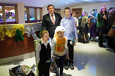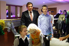 С приветственным словом и поздравлением к детям обратились также заместитель начальника департамента внутренней и кадровой политики области – начальник управления культуры области Константин Курганский и заслуженный учитель Российской Федерации, «Отличник просвещения», директор коррекционной общеобразовательной школы-интерната №23 Александр Годин. Почётные гости пожелали детям верить в сказку и исполнение новогодних желаний.