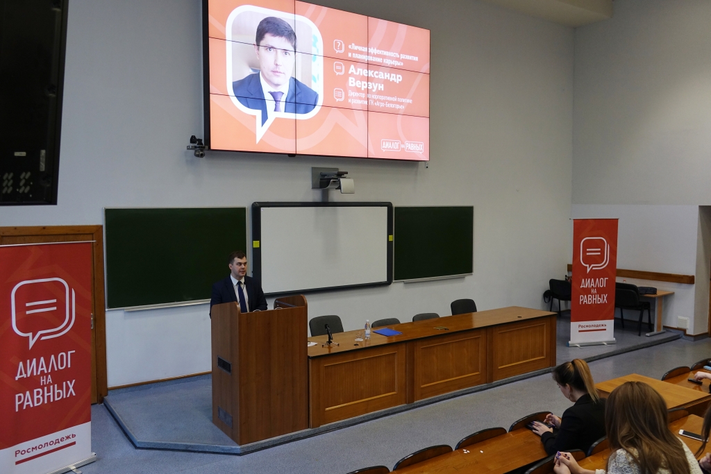 В рамках проекта Росмолодёжи «Диалог на равных» прошла встреча студентов вуза c директором по корпоративной политике и развитию ГК «Агро-Белогорье» Александром Верзуном