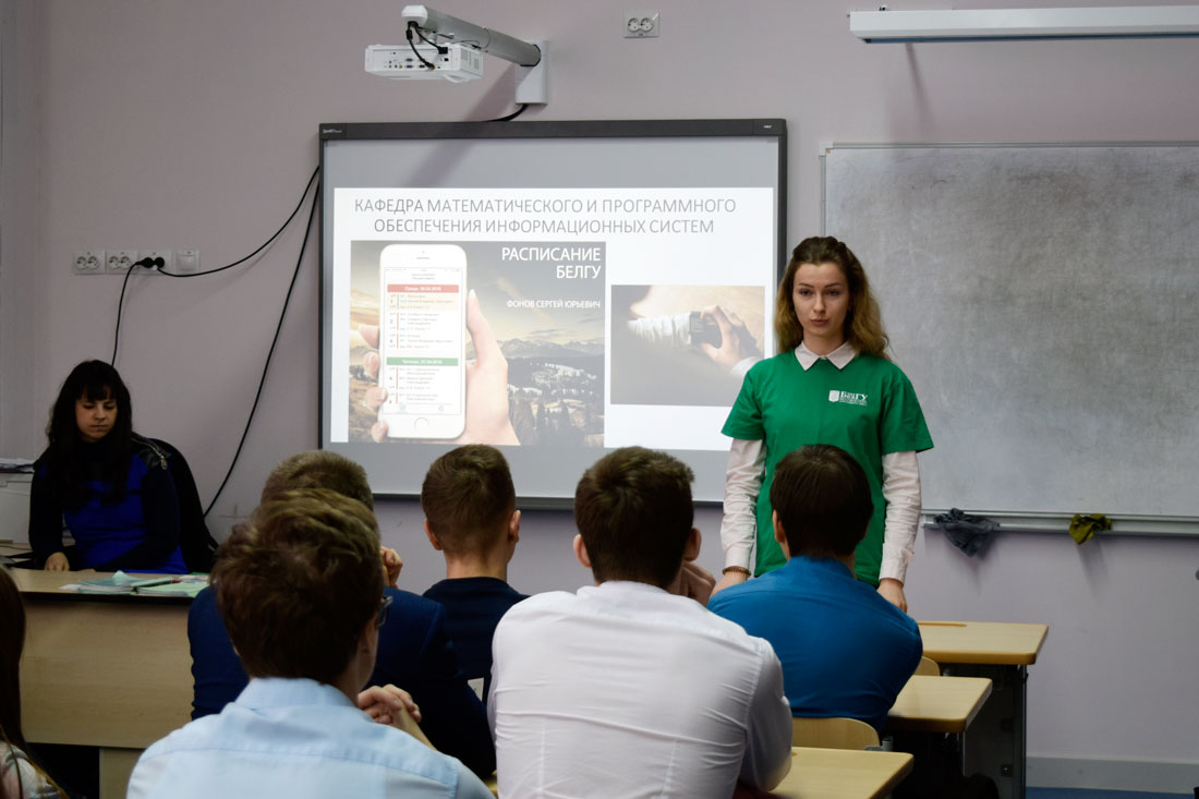 Общение в форме интерактивной беседы сопровождалось показом мультимедийных роликов и презентаций. Школьники узнали о преимуществах обучения в НИУ «БелГУ», ознакомились со студенческими разработками, деятельностью университетского студенческого конструкторского бюро, стали зрителями мастер-класса «IT-креативность».