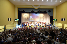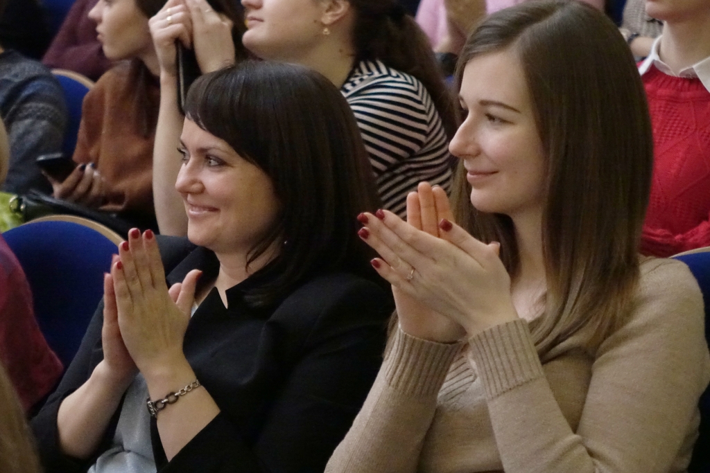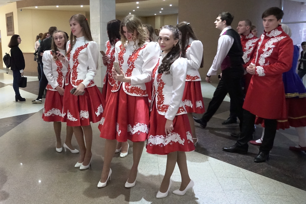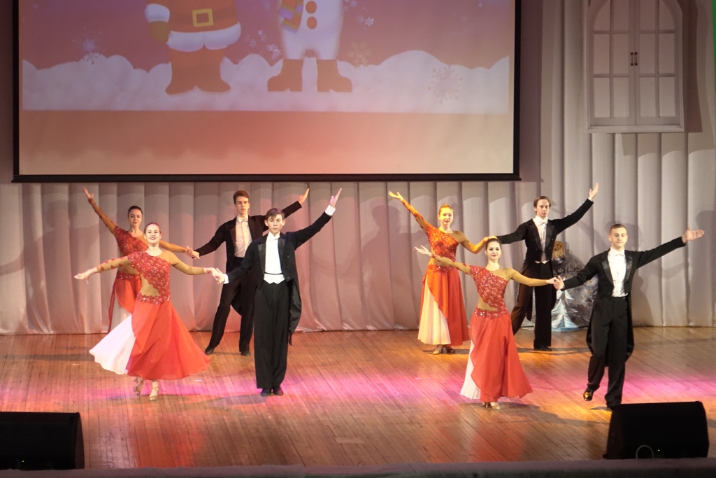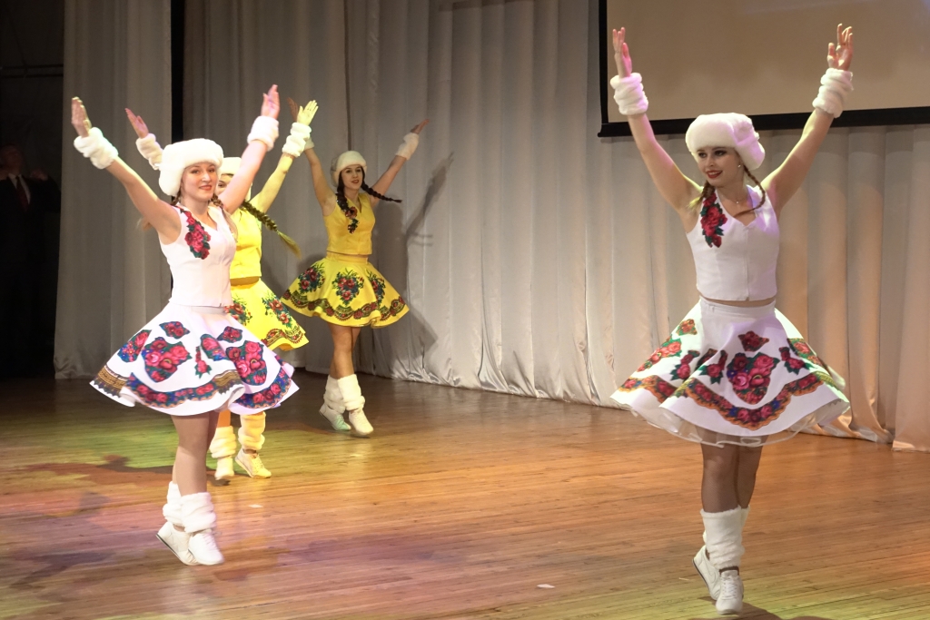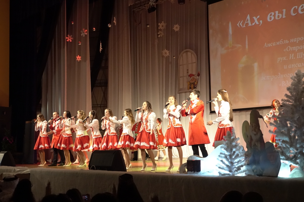 В концертном зале молодёжного культурного центра собрались студенты, представители ректората, преподаватели, сотрудники и ветераны вуза. Зрителей приветствовали Дед Мороз и Снегурочка, а также другие сказочные персонажи.