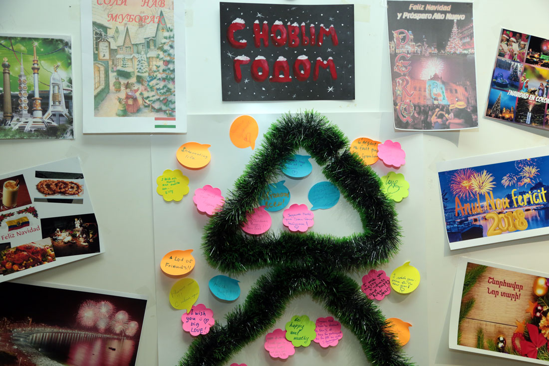 Праздничный концерт предваряла работа интерактивных площадок, где все желающие могли вырезать из бумаги снежинки, измерить силу лёгких, оставить новогоднее пожелание. Под музыку ректорского духового оркестра зрители заполняли зал.
