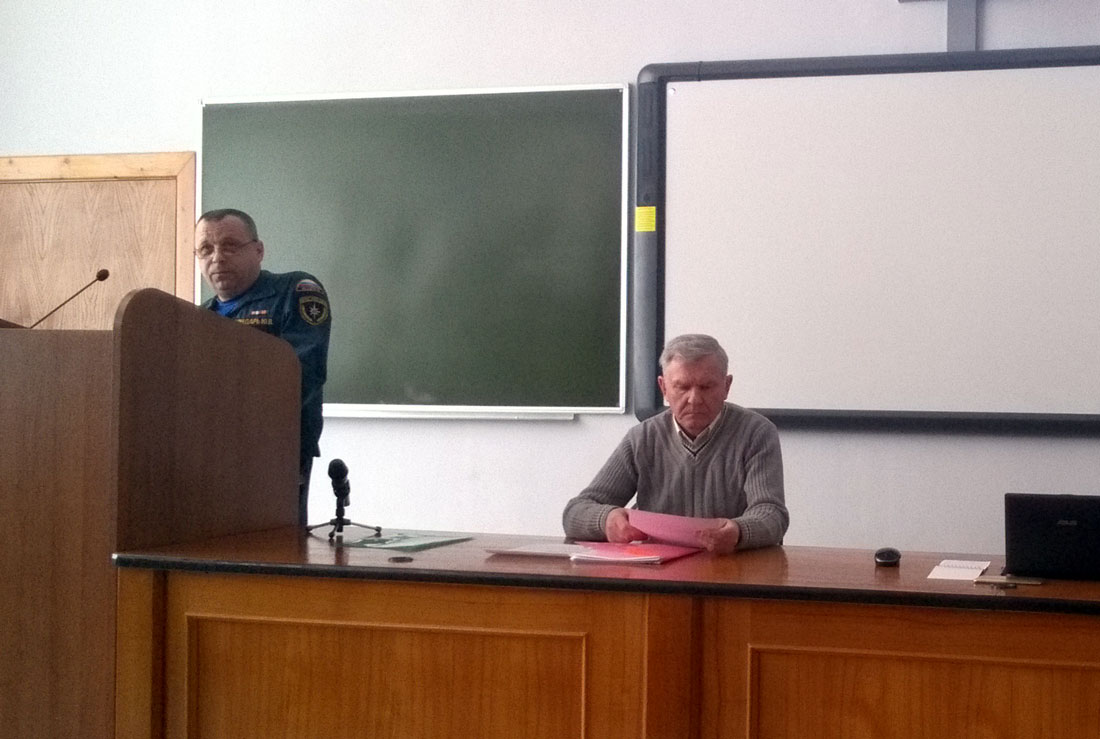 В своём выступлении начальник отдела ГО и защиты от ЧС НИУ «БелГУ» Михаил Егоров отметил, что в 2017 году на территории университета, в зданиях, учебных корпусах и в общежитиях чрезвычайных ситуаций не произошло. Это является основным положительным итогом деятельности и подготовки университета в указанной области. Михаил Михайлович также уделил особое внимание организации и проведению в структурных подразделениях курсового обучения работников в области ГО и защиты от ЧС в 2018 году по новой рабочей программе в объёме 16 часов.