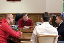 Председатель РСМ Павел Красноруцкий и руководитель департамента организационной и кадровой работы ЦК РСМ Сергей Соколов встретились с активистами студенческих объединений Белгородского госуниверситета