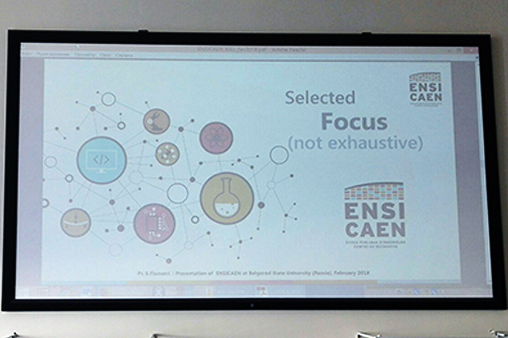 Институт инженерных технологий и естественных наук НИУ «БелГУ» сотрудничает с Высшей национальной инженерной школой г. Кан (Франция) около трёх лет. Руководитель факультета электроники и прикладной физики Высшей национальной инженерной школы г. Кан профессор Стефан Фламент в очередной раз посетил Институт инженерных технологий и естественных наук НИУ «БелГУ».