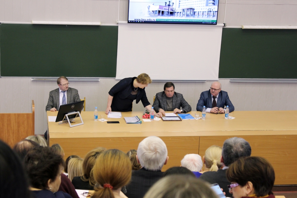 В начале заседания ректор вручил благодарность департамента внутренней и кадровой политики Белгородской области Ольге Моисеенко, доценту кафедры английского языка и методики преподавания.