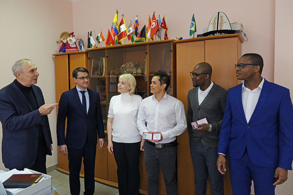 Первые удостоверения получили иностранные выпускники, которые являются официальными представителями Ассоциации выпускников за рубежом: Казимиру Эринелту (Ангола), Кете Каршул Жорже (Ангола) и Мунез Андраде Луис Фернандо (Эквадор). В церемонии вручения удостоверений приняли участие проректор по международному сотрудничеству Владислав Кучмистый, заместитель проректора по международному сотрудничеству Михаил Трубицын и директор департамента социальной политики Татьяна Никулина.