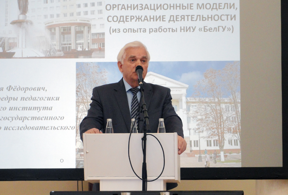 На пленарном заседании конференции был представлен доклад об опыте работы Белгородского государственного национального исследовательского университета по подготовке учительских кадров и развития социально-педагогического пространства региона, с которым выступил профессор кафедры педагогики Илья Исаев. В контексте мировой тенденции университезации педагогического образования опыт НИУ «БелГУ» является вполне современным и перспективным. К примеру, СПбГУ планирует создание в своей структуре педагогического института как структурного подразделения университета.