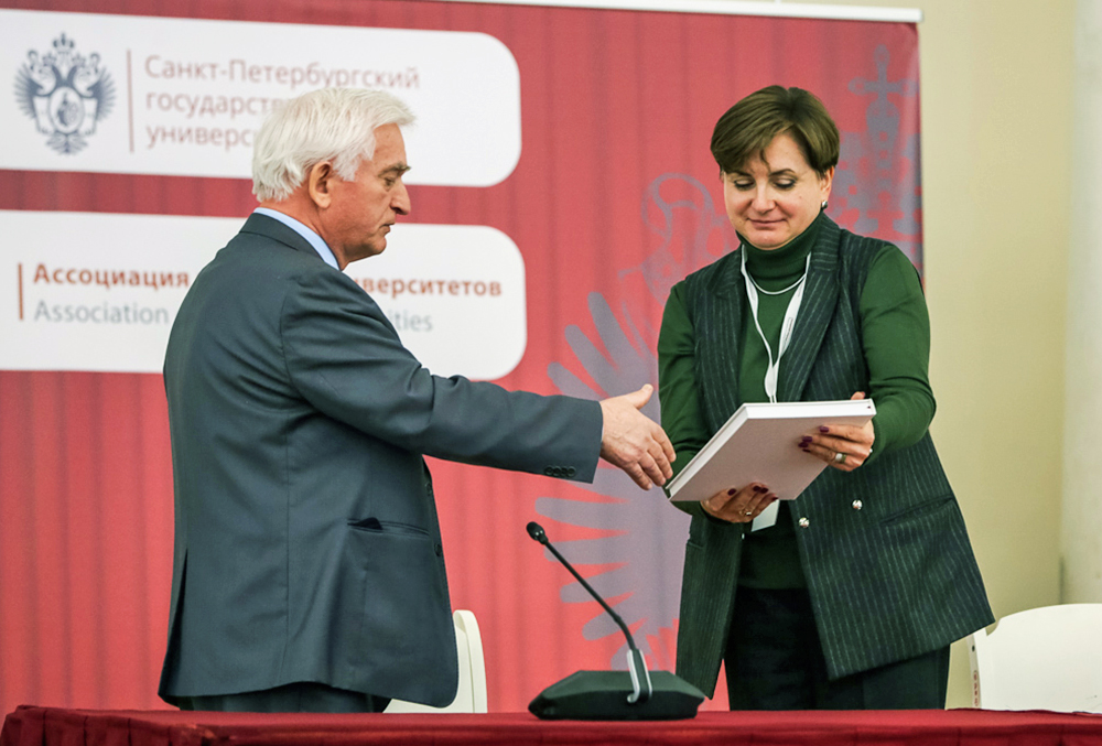 В заключение своего выступления Илья Фёдорович вручил проректору по учебно-методической работе СПбГУ Марине Лавриковой книгу, посвященную 140-летию НИУ «БелГУ».