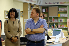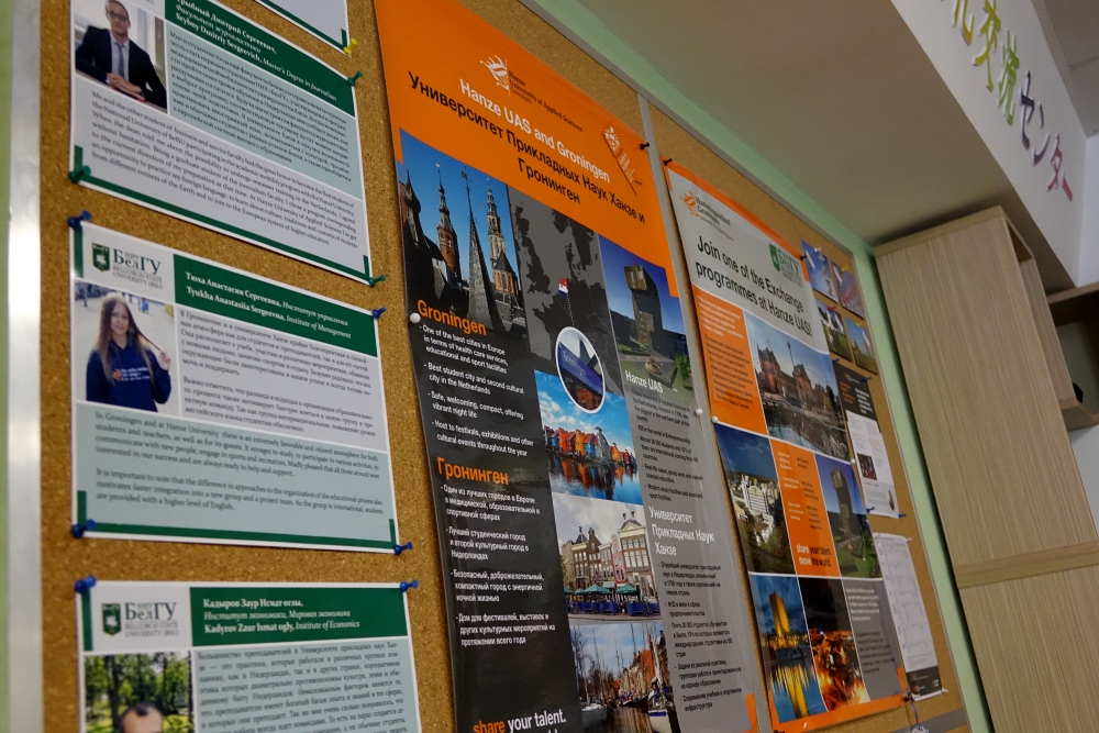 Торжественным моментом первого дня пребывания голландской делегации стало открытие в Центре межкультурной коммуникации экспозиции, посвящённой взаимодействию НИУ «БелГУ» и Университета прикладных наук Ханзе (Гронинген, Нидерланды)