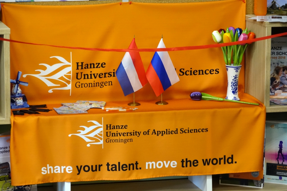 Экспозиция, представляющая собой собрание национальных сувениров Нидерландов, книг об Университете прикладных наук Ханзе и т.д., была открыта символическим перерезанием красной ленты Олегом Полухиным и Робом Верхофстадом.