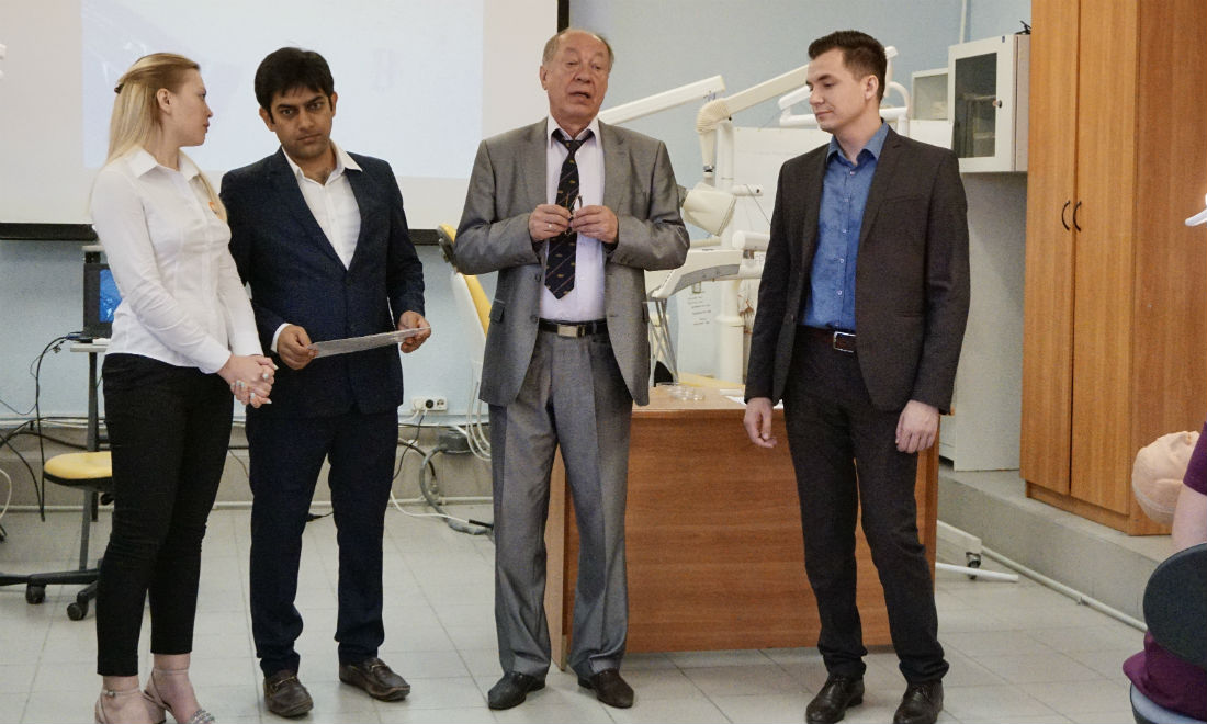 После встречи детский стоматолог, доктор Миит Р. Раматри провёл лекционно-практический курс – «Менеджмент кариеса у детей раннего возраста – техники и приемы» («Management of early childhood caries – tricks and techniques»), в котором приняли участие более тридцати практикующих врачей-стоматологов из районов области, клинические ординаторы и студенты 5 курса Медицинского института направления «Стоматология».