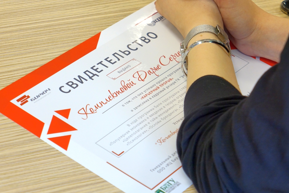 Заместитель генерального директора по развитию ООО «ИЦ «Бирюч» Александр Колбас и заместитель генерального директора по управлению персоналом ООО «ИЦ «Бирюч» Елизавета Бачурина вручили финалистам проекта сертификаты и пожелали им успехов в дальнейшей профессиональной деятельности.