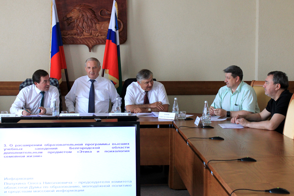 На состоявшемся совместном заседании комитетов областной Думы по агропромышленному комплексу и земельным отношениям, по природопользованию и экологии и по образованию, молодёжной политике и СМИ депутаты обсудили возможность введения в вузах региона дополнительного предмета, посвящённого этике и психологии семьи.